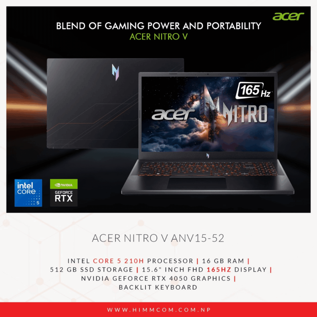 Dominate every game with the Acer Nitro V 15 ANV15-52 — built for speed, graphics power, and unbeatable performance.