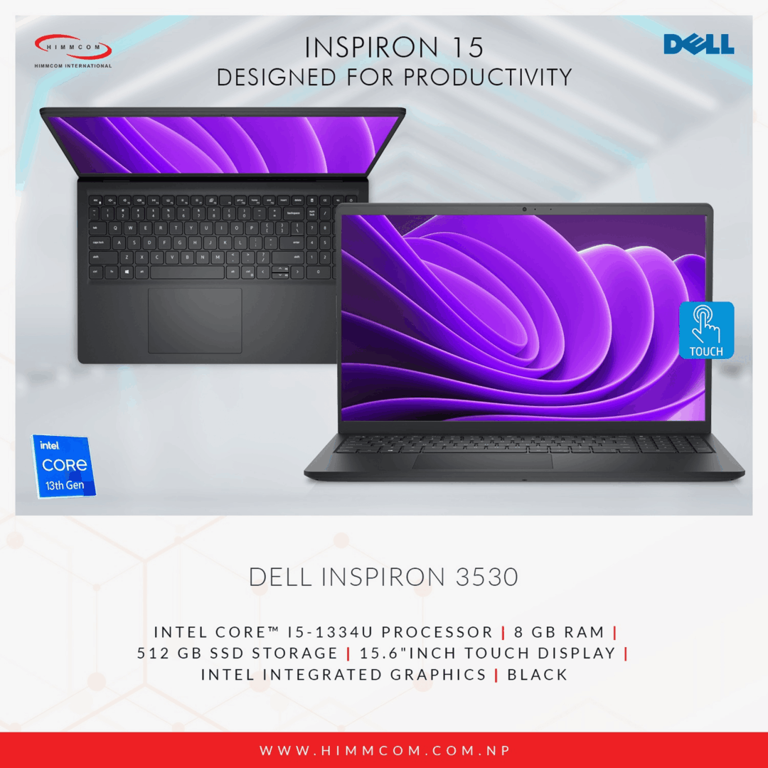 Dell Inspiron 3530 | Intel Core I5-1334U Processor | 8 GB RAM | 512 GB SSD Storage | 15.6″ Inch Touch Display | Intel Integrated Graphics | Black