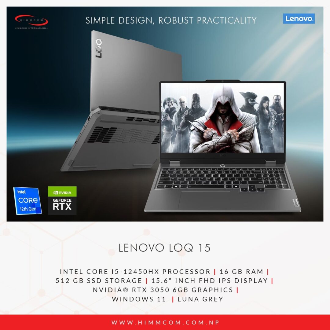 Lenovo LOQ 15 | Intel Core I5-12450HX Processor | 16 GB RAM | 512 GB SSD Storage | 15.6″ Inch FHD Display | NVIDIA RTX 3050 6GB Graphics | Windows 11 | Luna Grey